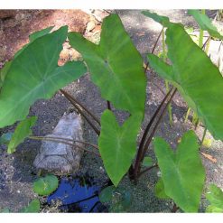 Taro or Elephant's ears is a large pond plant with lovely broad heart shaped leaves on reddish purple stems. This plant is best suited for larger ponds in a semi shaded position.
